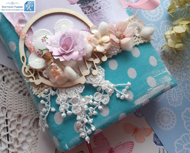 Блокнот получился нежнейшим, благодаря материалам из магазина Скрапбукинг с Евгенией Курдибановской: